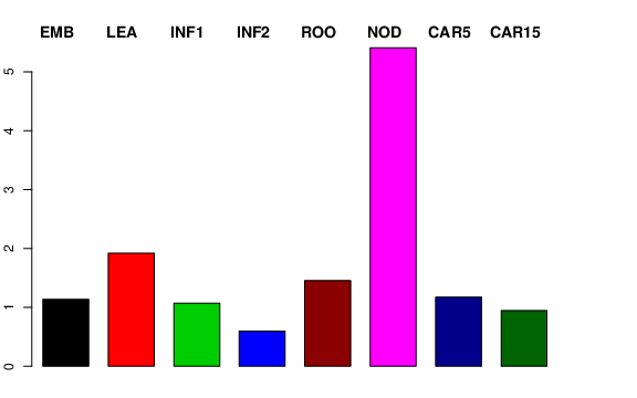 | ROO | Roots from the seedlings (10 cm shoot stage) | 2.41897 | 1.24841 | 0.840926 | 1.45278 |