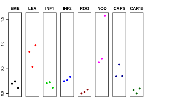 | ROO | Roots from the seedlings (10 cm shoot stage) | 0 | 0.0295466 | 0.0793335 | 0.0738913 |