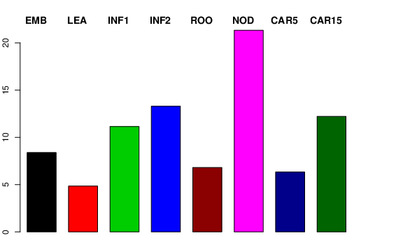 | ROO | Roots from the seedlings (10 cm shoot stage) | 3.84045 | 7.31281 | 8.88164 | 6.79997 |