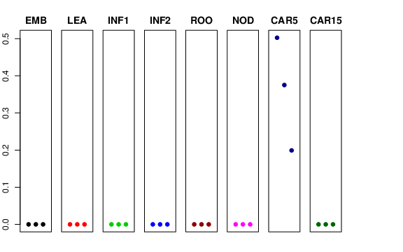 | ROO | Roots from the seedlings (10 cm shoot stage) | 0 | 0 | 0 | 0 |