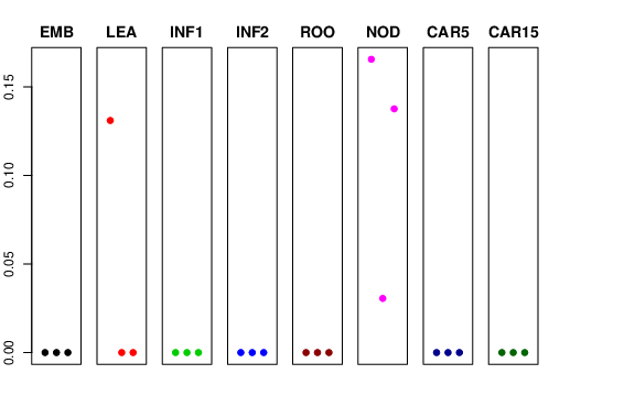 | NOD | Developing tillers at six leaf stage, 3rd internode | 0.165557 | 0.0305613 | 0.137587 | 0.131503 |