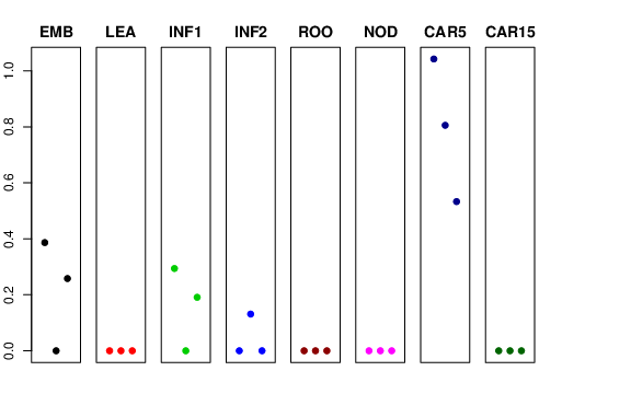 | ROO | Roots from the seedlings (10 cm shoot stage) | 0 | 0 | 0 | 0 |
