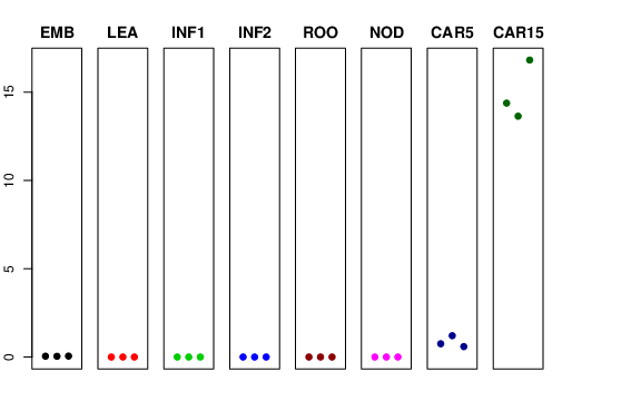| ROO | Roots from the seedlings (10 cm shoot stage) | 0 | 0 | 0 | 0 |