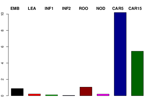 | ROO | Roots from the seedlings (10 cm shoot stage) | 0.508282 | 1.01119 | 0.705514 | 1.04644 |