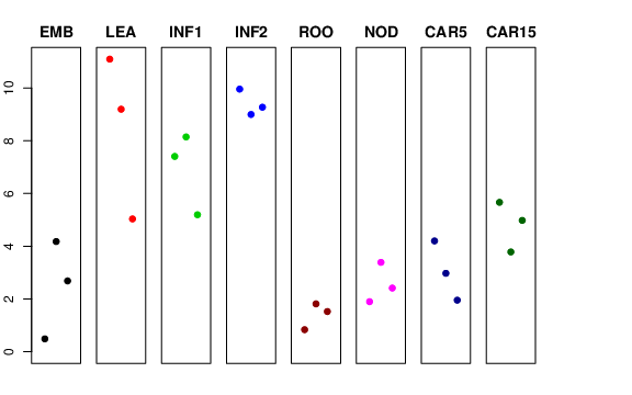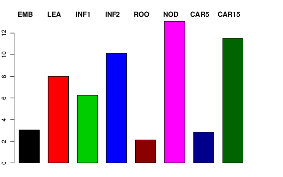| ROO | Roots from the seedlings (10 cm shoot stage) | 0.834297 | 1.81354 | 1.52297 | 2.11692 |