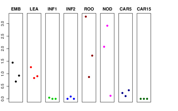 | ROO | Roots from the seedlings (10 cm shoot stage) | 3.27917 | 0.87023 | 1.72402 | 0 |