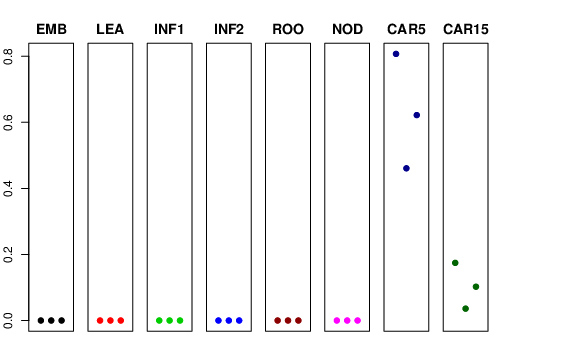 | ROO | Roots from the seedlings (10 cm shoot stage) | 0 | 0 | 0 | 0 |
