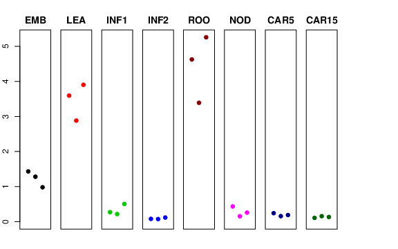 | ROO | Roots from the seedlings (10 cm shoot stage) | 4.62726 | 3.39033 | 5.25881 | 4.70198 |
