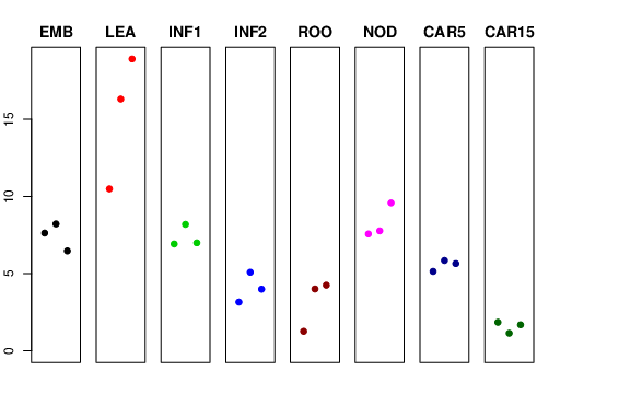 | ROO | Roots from the seedlings (10 cm shoot stage) | 1.26116 | 4.00557 | 4.25214 | 3.88599 |