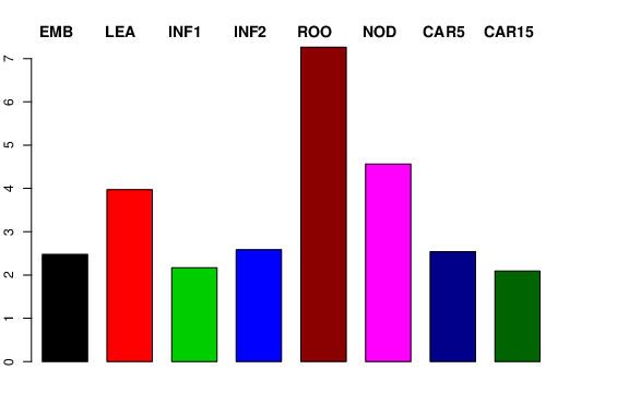 | ROO | Roots from the seedlings (10 cm shoot stage) | 7.07469 | 4.60851 | 4.30487 | 7.26214 |