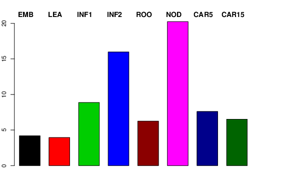 | ROO | Roots from the seedlings (10 cm shoot stage) | 2.54313 | 6.04958 | 6.83004 | 6.25641 |