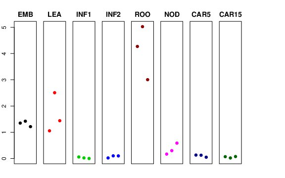 | NOD | Developing tillers at six leaf stage, 3rd internode | 0.167206 | 0.299119 | 0.585388 | 1.10125 |