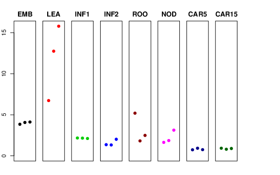 | ROO | Roots from the seedlings (10 cm shoot stage) | 5.19779 | 1.81825 | 2.48667 | 2.54253 |