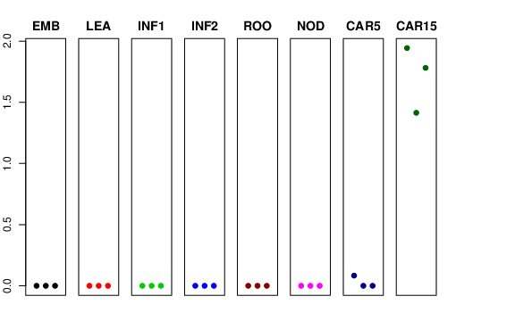 | ROO | Roots from the seedlings (10 cm shoot stage) | 0 | 0 | 0 | 0 |