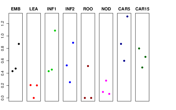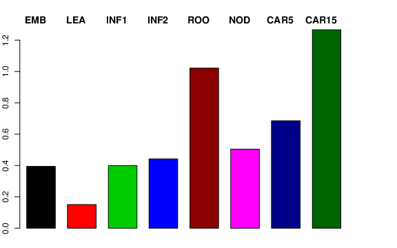 | ROO | Roots from the seedlings (10 cm shoot stage) | 0 | 0.51457 | 0 | 1.02146 |