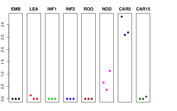 | NOD | Developing tillers at six leaf stage, 3rd internode | 0.656236 | 0.365471 | 1.13196 | 1.54635 |
