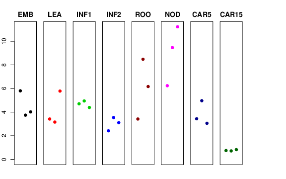 | ROO | Roots from the seedlings (10 cm shoot stage) | 3.41702 | 8.47682 | 6.16559 | 0 |