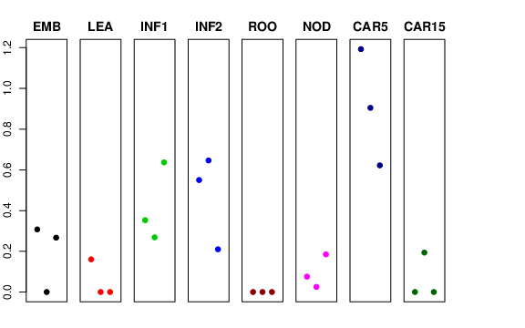 | ROO | Roots from the seedlings (10 cm shoot stage) | 0 | 0 | 0 | 0 |