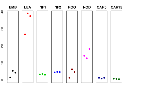 | ROO | Roots from the seedlings (10 cm shoot stage) | 1.37488 | 6.39097 | 4.78816 | 6.81165 |