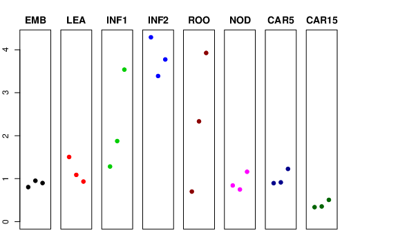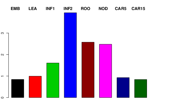 | ROO | Roots from the seedlings (10 cm shoot stage) | 0.700803 | 2.33378 | 3.92456 | 2.5749 |