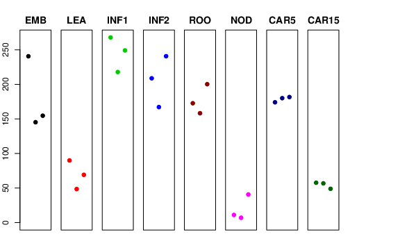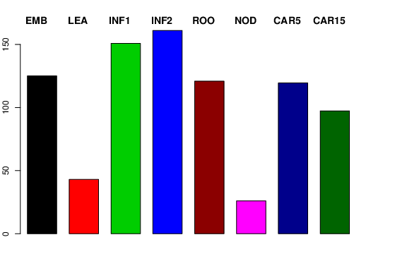 | ROO | Roots from the seedlings (10 cm shoot stage) | 172.631 | 158.196 | 200.195 | 120.896 |