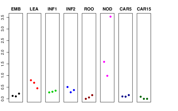 | ROO | Roots from the seedlings (10 cm shoot stage) | 0 | 0.0582411 | 0.158601 | 0.133111 |