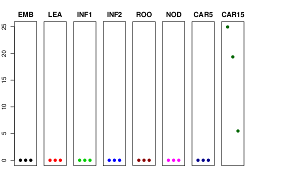 | ROO | Roots from the seedlings (10 cm shoot stage) | 0 | 0 | 0 | 0 |