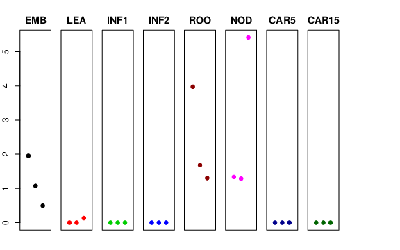 | ROO | Roots from the seedlings (10 cm shoot stage) | 3.97777 | 1.68287 | 1.30241 | 2.8205 |