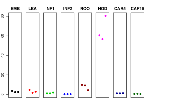 | ROO | Roots from the seedlings (10 cm shoot stage) | 9.74792 | 9.15161 | 4.31035 | 10.3016 |