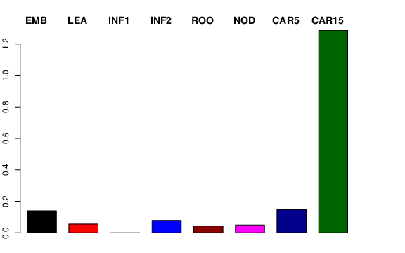 | CAR15 | Developing grain, bracts removed (15 DPA) | 0.437801 | 0.562793 | 0.549647 | 1.28679 |