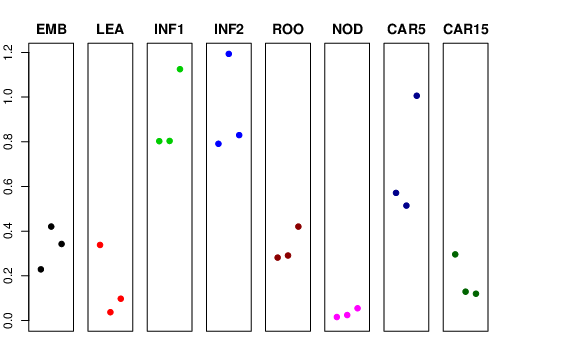 | ROO | Roots from the seedlings (10 cm shoot stage) | 0.281566 | 0.290857 | 0.420325 | 0.393438 |