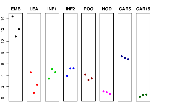 | ROO | Roots from the seedlings (10 cm shoot stage) | 4.13666 | 3.1725 | 3.45964 | 3.22523 |