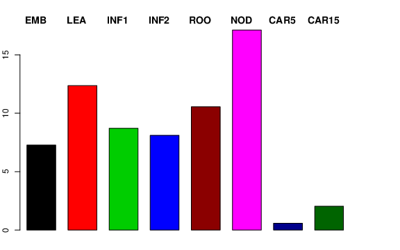 | NOD | Developing tillers at six leaf stage, 3rd internode | 2.72082 | 5.92173 | 7.24413 | 17.1309 |
