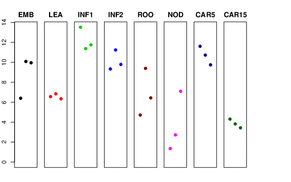 | ROO | Roots from the seedlings (10 cm shoot stage) | 4.71269 | 9.39296 | 6.4363 | 0 |