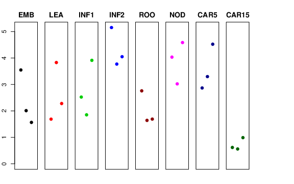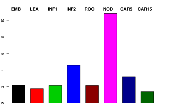 | ROO | Roots from the seedlings (10 cm shoot stage) | 2.75954 | 1.64215 | 1.69052 | 2.13264 |