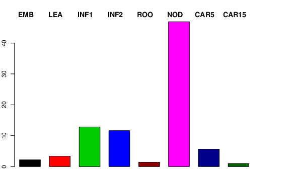 | NOD | Developing tillers at six leaf stage, 3rd internode | 8.78398 | 17.4934 | 22.9511 | 46.9211 |