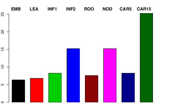 | INF2 | Developing inflorescences (1-1.5 cm) | 13.0149 | 14.1656 | 11.771 | 15.2174 |