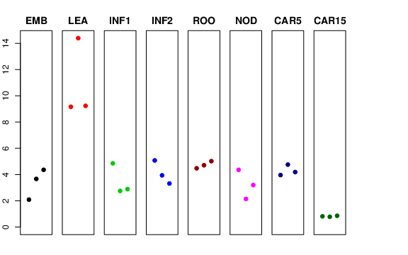 | ROO | Roots from the seedlings (10 cm shoot stage) | 4.47694 | 4.70799 | 5.01963 | 5.94376 |