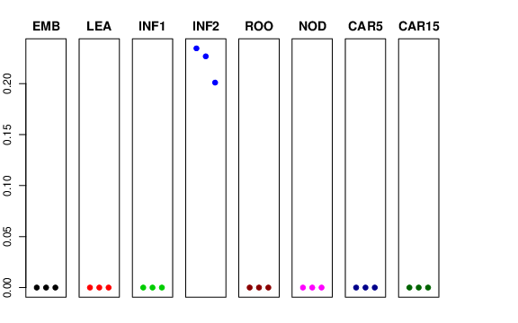 | ROO | Roots from the seedlings (10 cm shoot stage) | 0 | 0 | 0 | 0 |