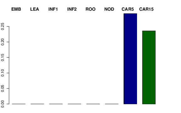 | ROO | Roots from the seedlings (10 cm shoot stage) | 0 | 0 | 0 | 0 |