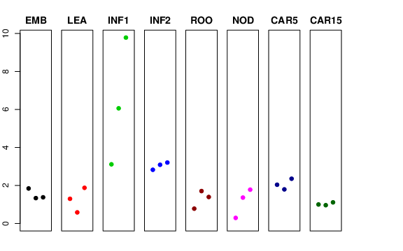 | ROO | Roots from the seedlings (10 cm shoot stage) | 0.779499 | 1.70464 | 1.39357 | 0 |