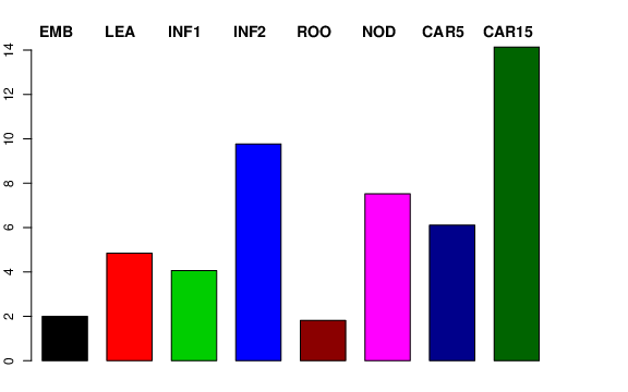 | ROO | Roots from the seedlings (10 cm shoot stage) | 0.651431 | 3.02923 | 2.20637 | 1.81308 |