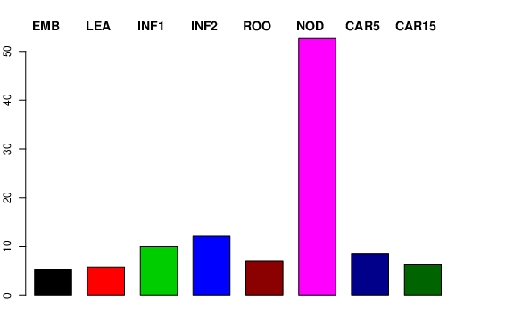 | ROO | Roots from the seedlings (10 cm shoot stage) | 1.06682 | 8.69378 | 2.67764 | 6.97163 |