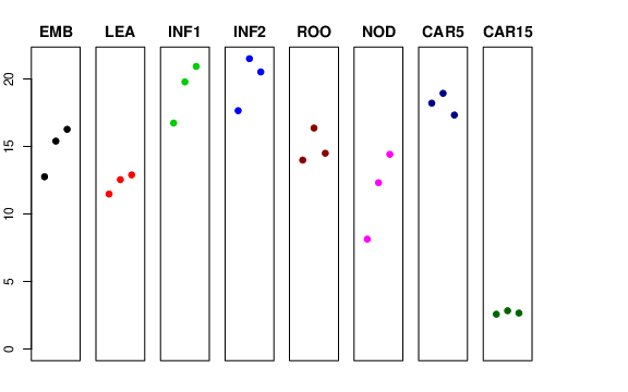 | INF2 | Developing inflorescences (1-1.5 cm) | 17.6558 | 21.5092 | 20.5285 | 21.4147 |