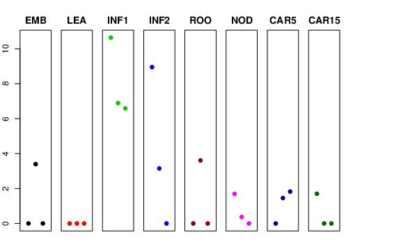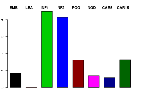 | ROO | Roots from the seedlings (10 cm shoot stage) | 0 | 3.60725 | 0 | 1.6328 |