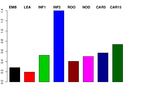 | ROO | Roots from the seedlings (10 cm shoot stage) | 0 | 1.01675 | 0 | 0.405546 |