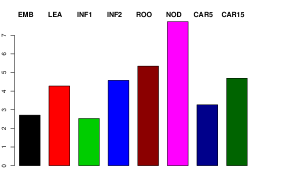 | ROO | Roots from the seedlings (10 cm shoot stage) | 4.05399 | 5.36568 | 4.75532 | 5.34474 |