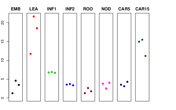 | ROO | Roots from the seedlings (10 cm shoot stage) | 1.26217 | 2.63372 | 1.76584 | 0 |