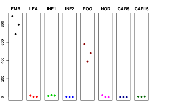 | ROO | Roots from the seedlings (10 cm shoot stage) | 580.72 | 389.265 | 482.306 | 456.452 |