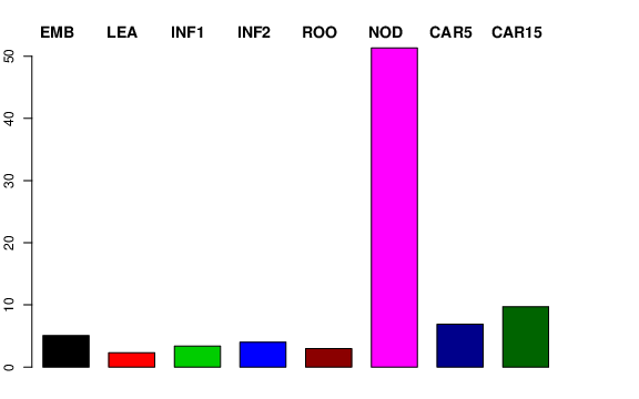 | NOD | Developing tillers at six leaf stage, 3rd internode | 6.72724 | 19.7563 | 8.74441 | 51.3385 |